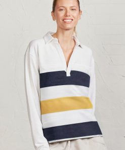Tasc Performance Women’s Women’s French Terry Polo Sweatshirt – Stripe | Spring Stripe