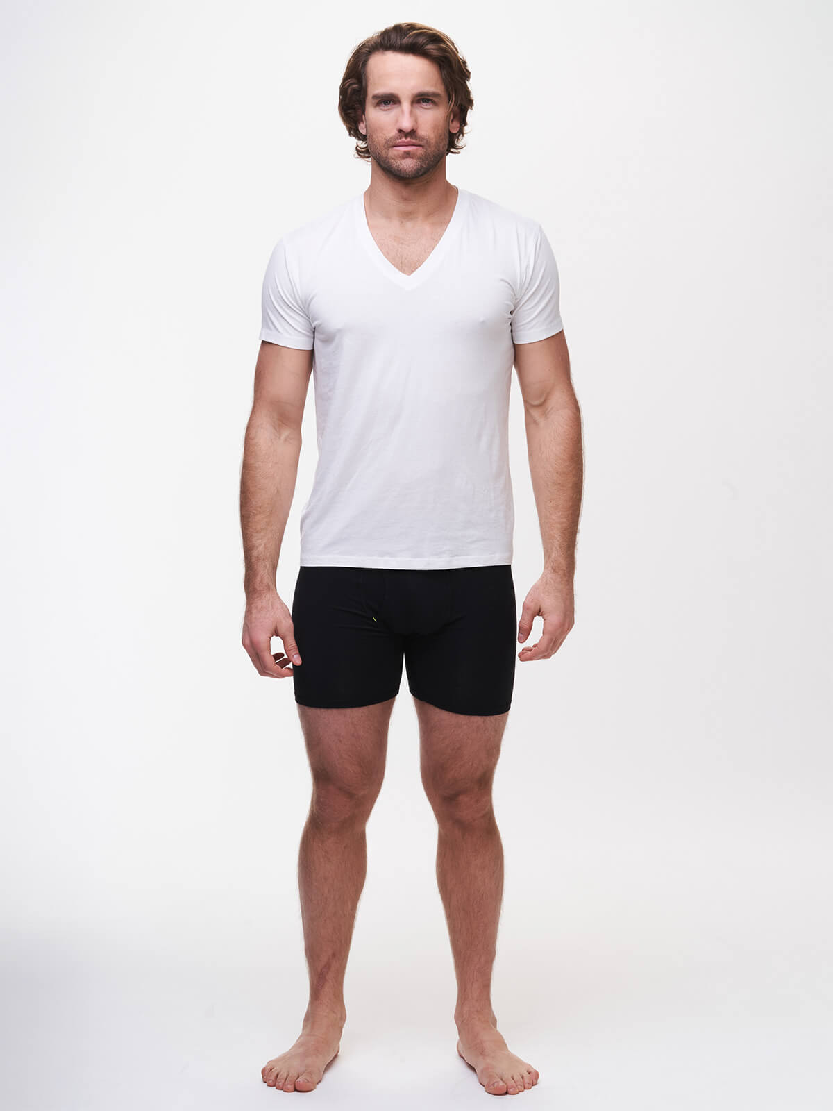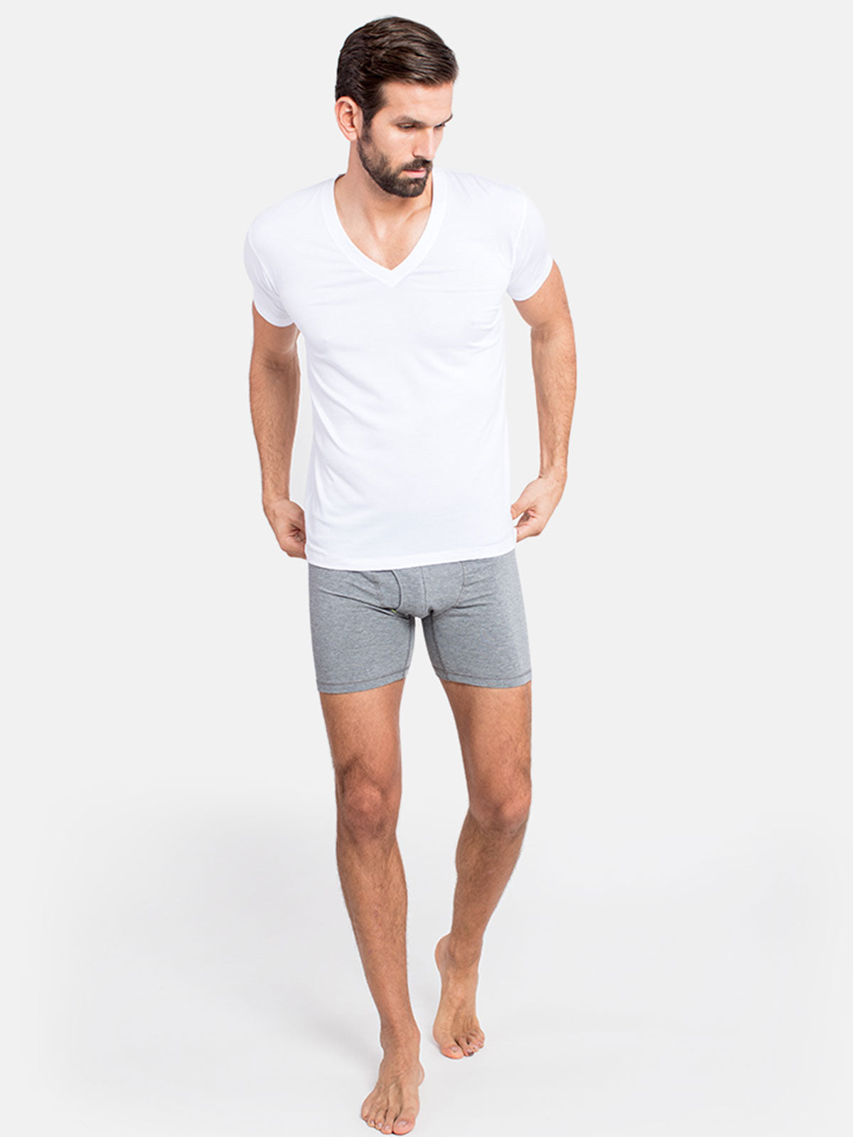 Never underestimate the power of a high-quality undershirt. Our Men’s BamBare Bamboo Comfort Deep V-Neck Undershirt fits like a second skin and fights odors, breathes like a champ and regulates your temperature, with a deeper V for easy coverage. Style #TMUV02.
