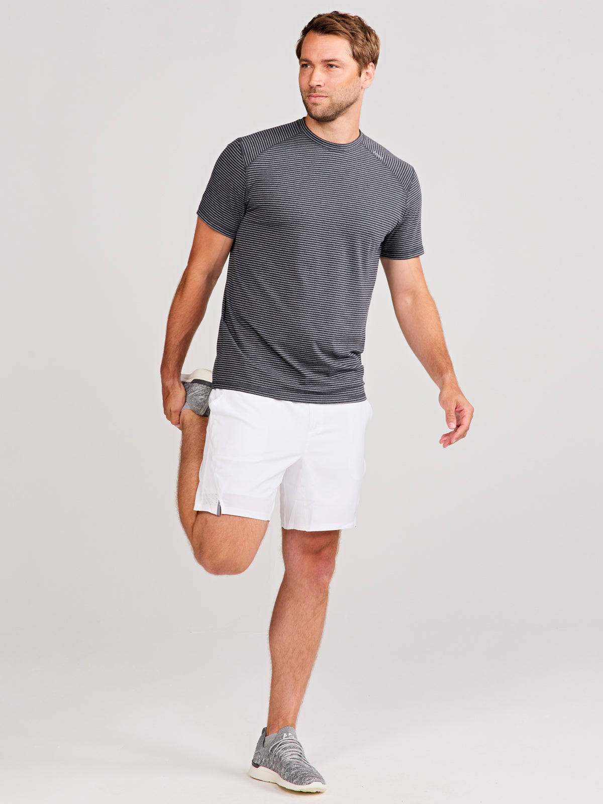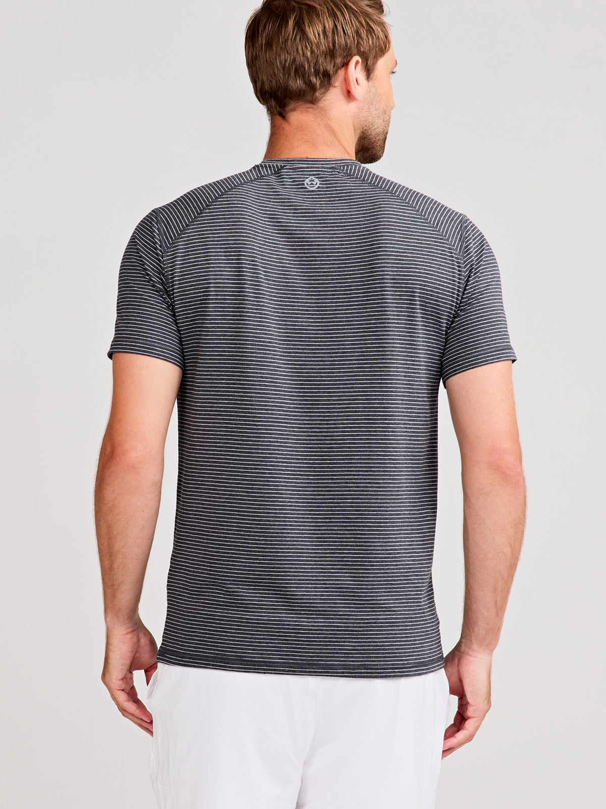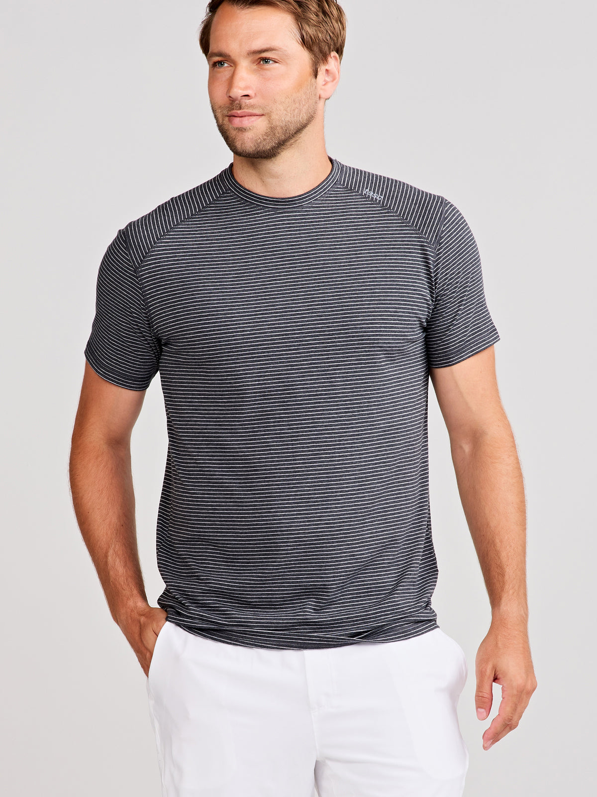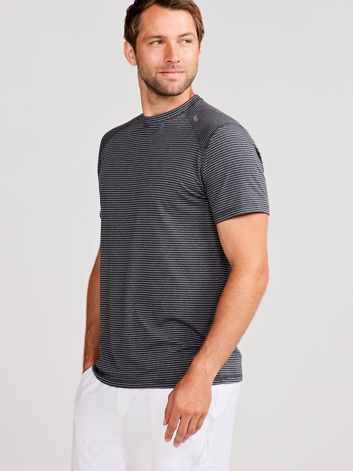 Our best-selling Carrollton Fitness T-shirt is now available in a new mini stripe pattern! This Carrollton Fitness T-Shirt – Mini Stripe is about performance powered by nature. Made from bamboo and organic cotton, this performance t-shirt is temperature regulating and versatile. It can withstand the toughest workouts without having to sacrifice comfort. Enjoy four-way stretch, moisture-wicking technology, odor-resistant material, and UPF sun protection. Whether you’re hitting the gym or enjoying outdoor activities, the Carrollton Fitness T-Shirt – Mini Stripe adds a stylish twist to your fitness wardrobe while ensuring optimal performance and comfort. Style #TM771Y.