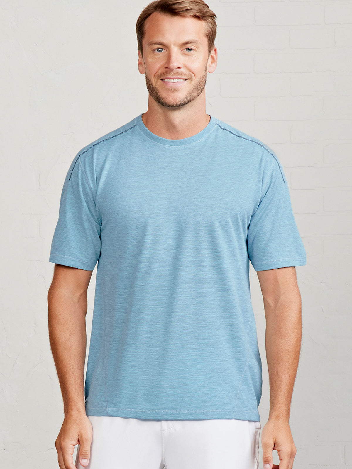 Experience ultimate comfort and performance with our lightweight MicroAir Performance Mesh T-Shirt. Crafted from ultra-fine beechwood tree silk fibers, this mesh-knit tee creates space between the fabric and skin, allowing for maximum airflow + breathability. Discover a modern contrast stitch touch that ensures your perfect fit, and stay cool and dry in durable, soft fabric made to move with you.