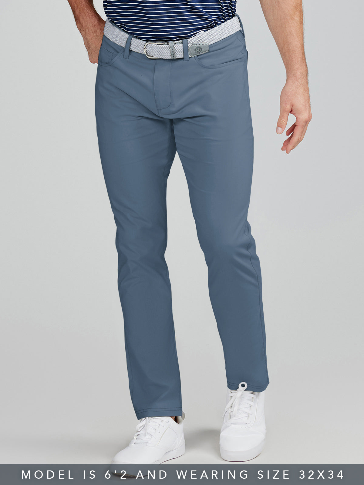 Do it all in our best-selling Motion Pants, inspired by our one-pair-for-everything mentality. Dress it up or dress it down, it’s an everyday essential. The slim fit is ideal for slender builds and has a tapered leg from thigh to ankle. We recommend sizing up for optimal comfort. Style #TM672.