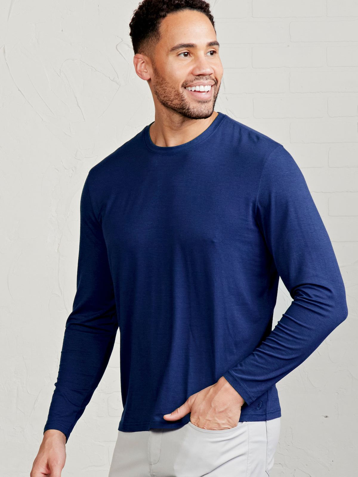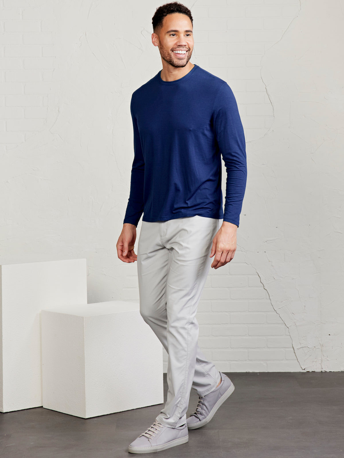 It’s your classic, clean-cut long sleeve t-shirt, elevated for everyday sophistication – meet the Pimaluxe Long Sleeve T-Shirt. Crafted from the same signature bamboo fabrication you love and enhanced with ultra soft pima cotton, this t-shirt is designed for a more polished look at feel for everyday casual-meets-cool style. Pair it with your favorite denim or our bestselling Motion Pants for easy everyday wear.