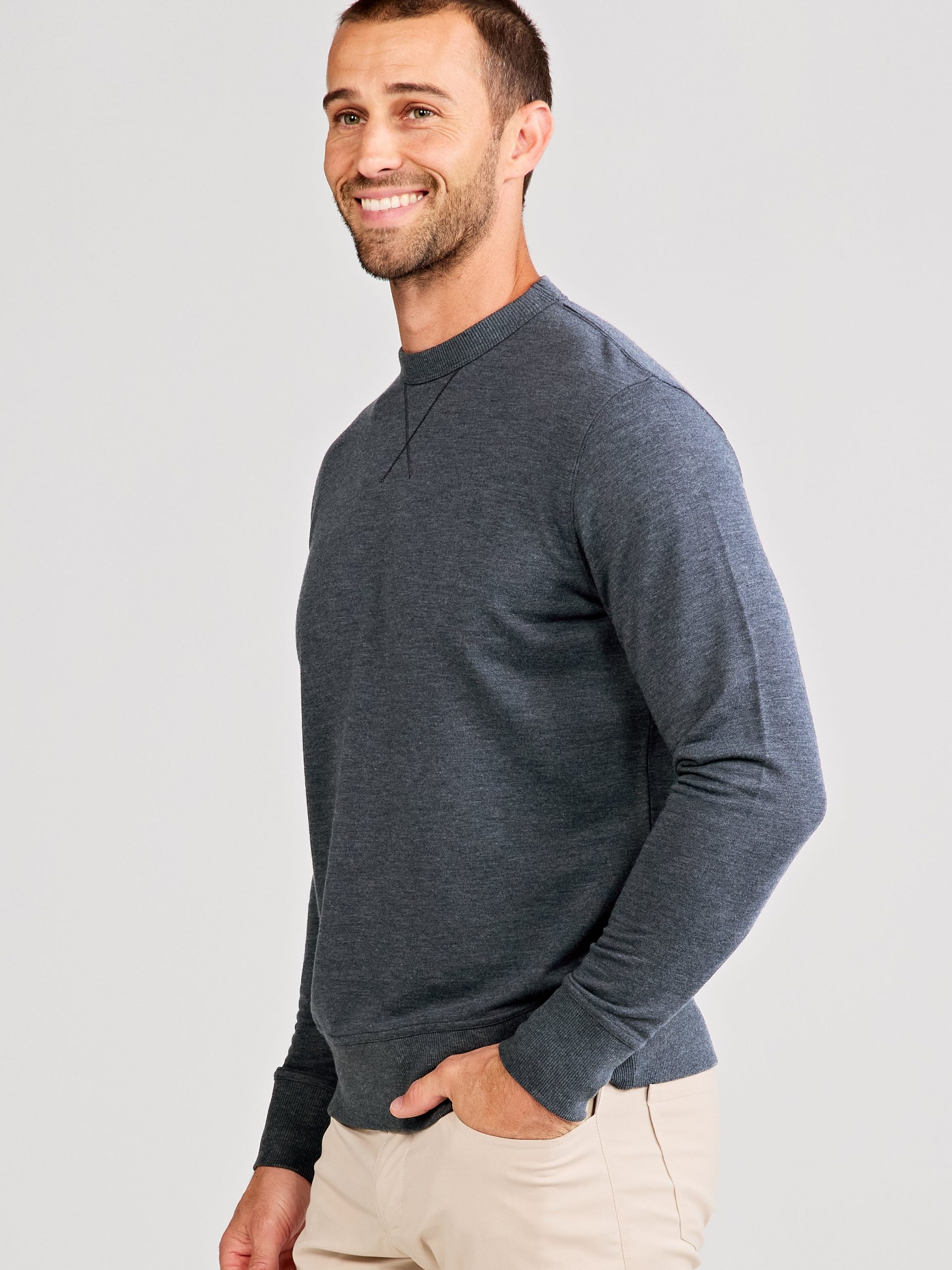 Elevate your everyday comfort with the Stadium French Terry Sweatshirt. Crafted from soft diagonal French terry, it’s designed for a relaxed fit with a fitted bottom band for a polished finish. This sweatshirt is perfect for layering or wearing solo—whether you’re lounging or on the move. Classic comfort, redefined. #TM829H