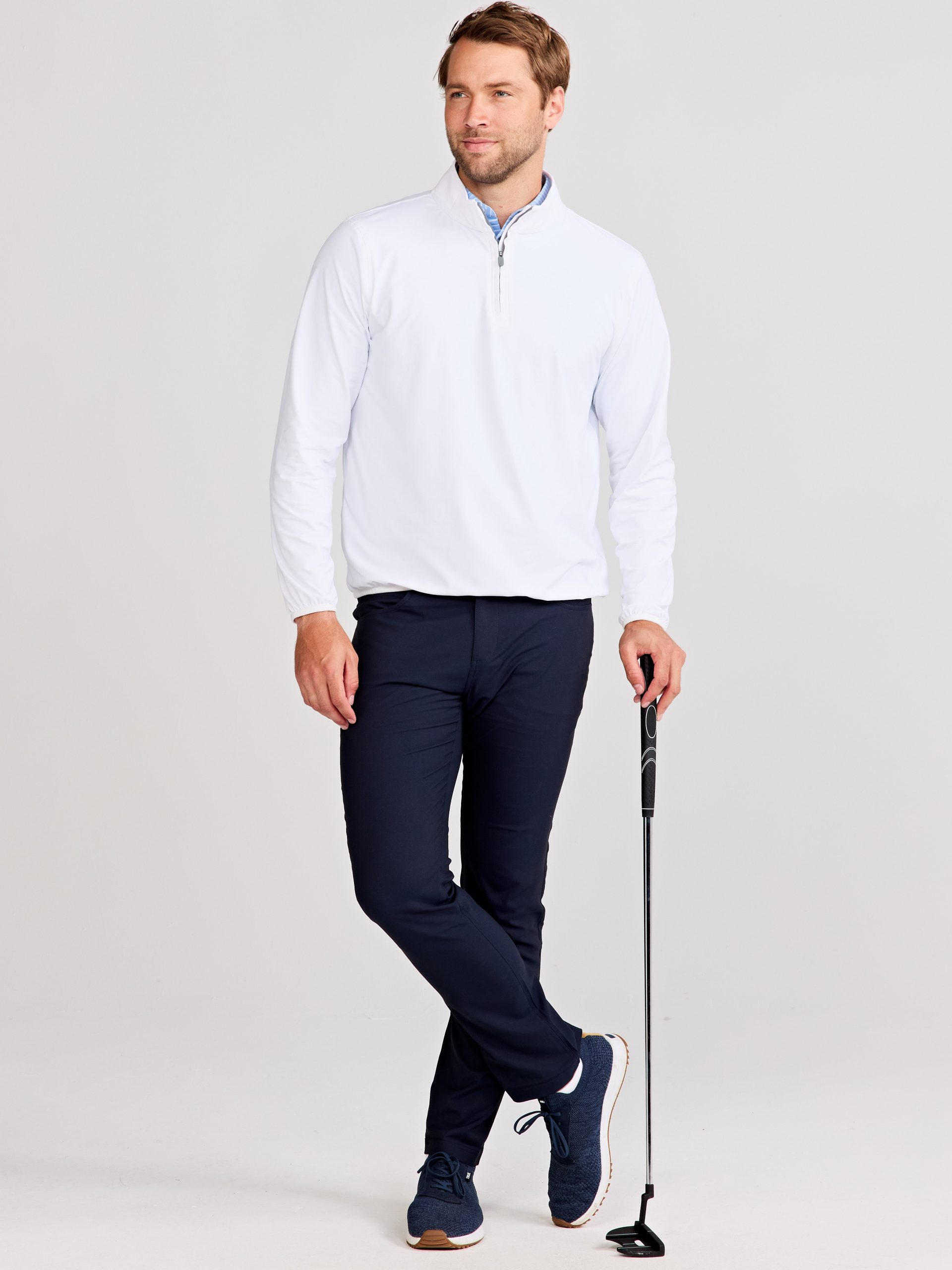 Meet the Stratford Performance Quarter Zip, the perfect layering piece. This quarter zip is great for the golf course, no matter the weather, with temperature regulating superpowers. Not only are they extremely comfortable and lightweight but they outperform everyone else. The comfortable relaxed fit allows you to move and swing in any direction. It’s also perfect for running errands, staying warm at the office, and anything in between. Style #TM796.