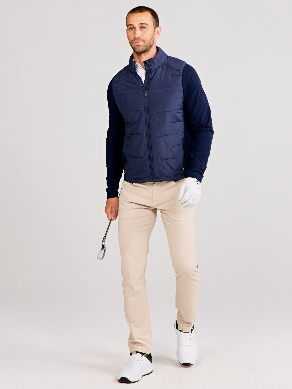 More than a jacket, it’s your golfing advantage. Meet the Windermere Hybrid Jacket – The Perfect Layer for Every Swing. Experience the pinnacle of comfort and performance – crafted with an ultra soft quilted outer shell with wind & water-resistant properties & lightweight recycled insulation, this versatile jacket offers exceptional warmth and protection without sacrificing style. Style #TM792.