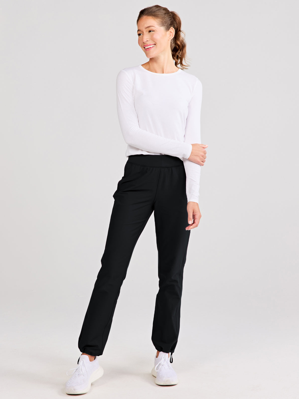 Sleek, Sophisticated, elevated for everyday – meet the Merge Commuter Pant. More than a pant – it’s an essential pant inspired by active movement. With a sleek, lightweight stretch fabric, this pant is designed for maximum mobility – whether you’re on the fairway or on the go. Style #TW966