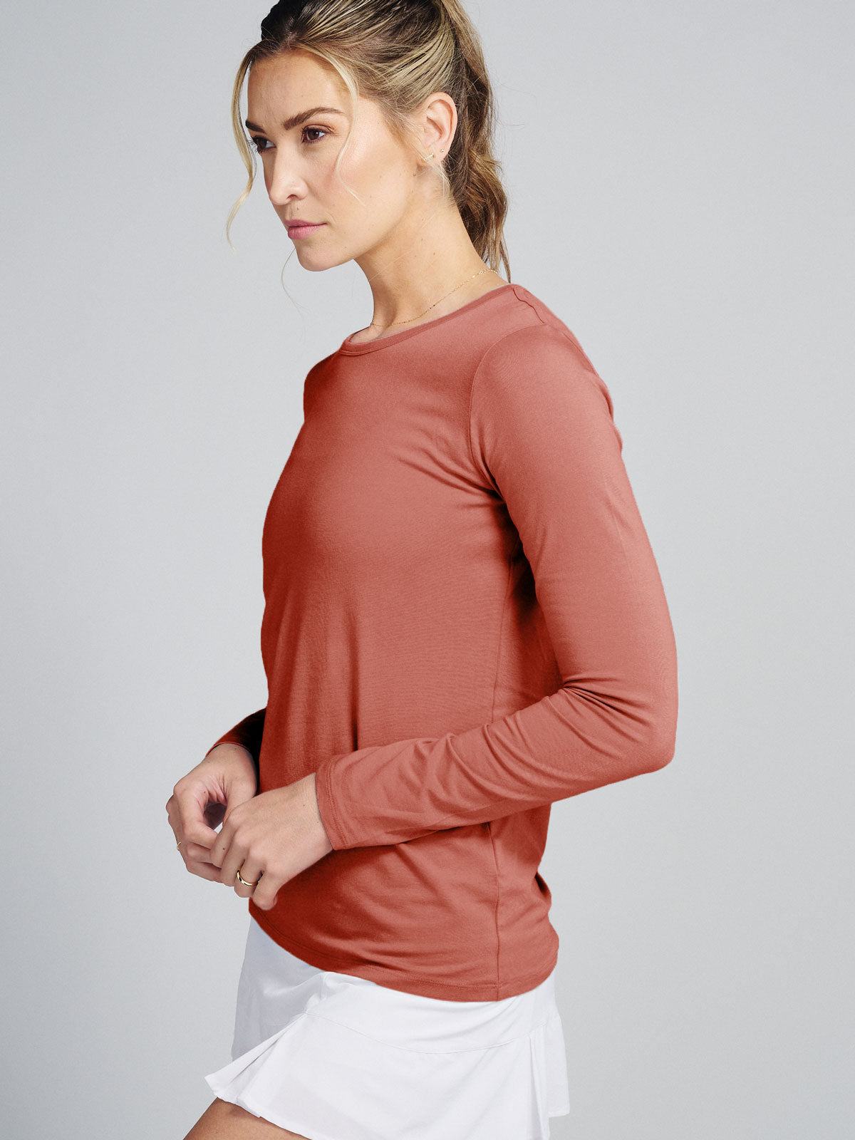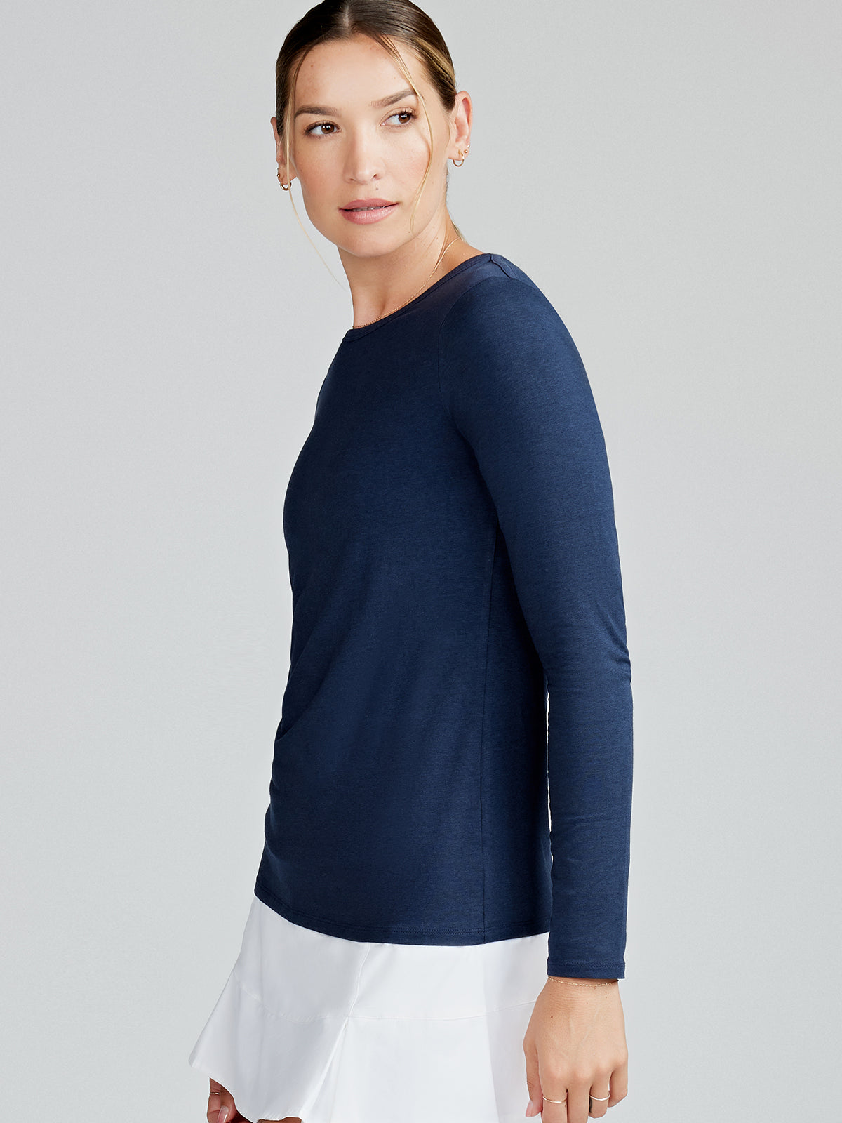 The NOLA Long Sleeve isn’t your average long sleeve top. A light and breathable active top, it’s designed to naturally wick moisture away from the body and protect your skin from the sun. Pair this elevated essential with our jogger for an athleisure look or layer under our NOLA jacket for those chilly days! Explore our Women’s Long Sleeve Shirts collection for the NOLA Long Sleeve T-Shirt, a versatile addition to your wardrobe. Style #TW741.